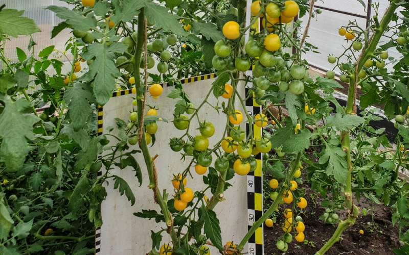 Кстати, этот гибрид раннеспелый, созревает уже через 90-95 дней после посева семян. Растение индетерминантное, мощное, высотой до 1,5 м. Наилучшую результативность показывает при формировании двумя стеблями и размещении не более трех кустов на 1 м².
