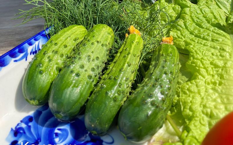 Представляю вам огурец на пикули Комарик F1. Растёт в теплице. Это пучковый урожайный гибрид с огурчиками размером до 10 см. Куст мощный, быстрорастущий. Учитывая две волны аномальной жары (до +42 °C), которые длились 10 дней с интервалом в 2 недели, урожай Комарик F1 давал исправно, при условии ежедневных поливов. Но в жару давал горькие огурцы. При наступлении температуры не выше +28 °C днём, +18 °C ночью – последующие плоды имели вкус без горечи.