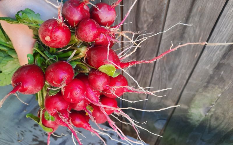 Редис посеян уже 4 раз и всё из одного пакета, очень вкусный, без горечи. Капуста только начала завязываться, потому что было очень жарко и сухо.