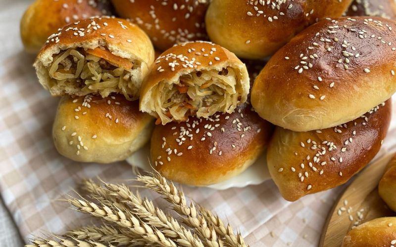 Пирожки с мясо-капустной начинкой.