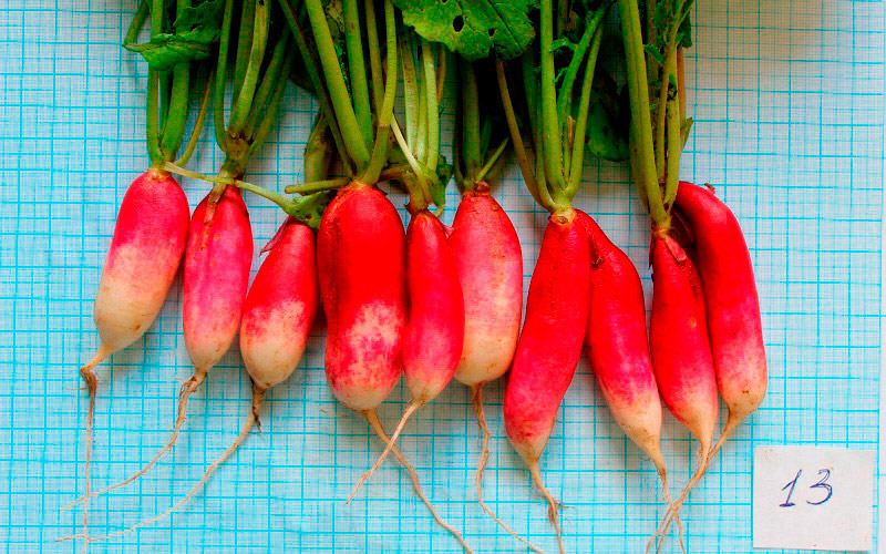 Первые результаты: На прошлой неделе убирали редис. Удивил своей скороспелостью и устойчивостью к стрелкованию. Ведь посеян был 7 июня. Формировал корнеплоды на самом длинном дне. Особенно понравились №№ 12 и 13. № 12 - скороспелый (вегетационный период 25 суток), корнеплод у него самый крупный - 24 г, кожура толще, чем у остальных, вкус полуострый, самая высокая устойчивость к стеблеванию. По вкусу и внешнему виду лучше понравился № 13 (вегетационный период 28 суток), масса корнеплода 15 г. Очень сочный и ароматный. № 11 понравился меньше из-за очень острого вкуса и склонности к стеблеванию. Требуется его изучение на коротком световом дне. Посеем еще раз в августе и в апреле, тогда уже можно сделать окончательные выводы. В целом очень понравились образцы, все районированные сорта при летнем посеве ушли в цветонос, не сформировав корнеплода, а эти приятно удивили. По всем трем образцам сделано морфологическое описание (по методике ООС).