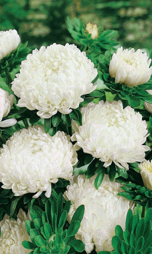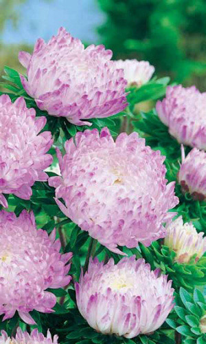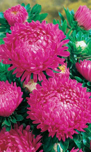 Серия астр с полностью махровыми игольчатыми соцветиями красивой формы до 10 см в диаметре. Куст букетной формы, с большим количеством стеблей. С каждого можно получить до 20 соцветий. Длительно сохраняют декоративность на клумбе и в вазе. Все сорта серии выровнены по высоте, габитусу, времени цветения, форме и размеру цветка, что делает эту серию универсальной и полностью пригодной для профессионального использования (производство срезки, цветущей рассады). Высота 60-70 см...