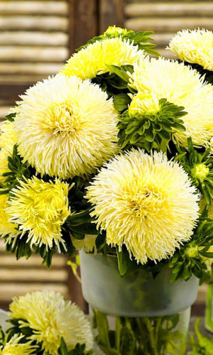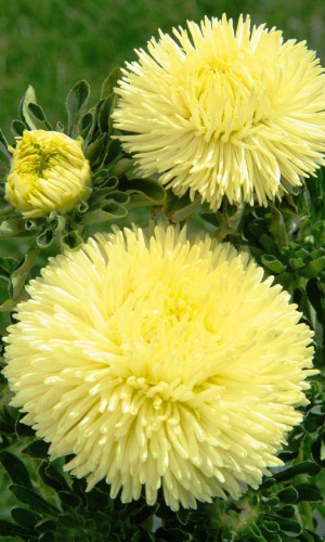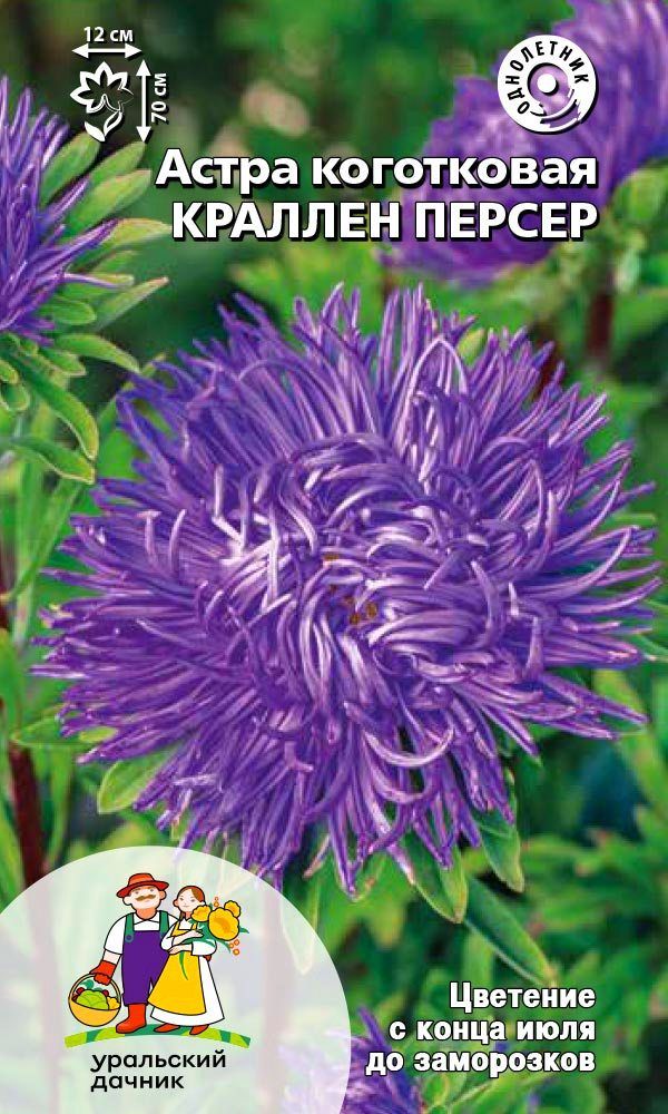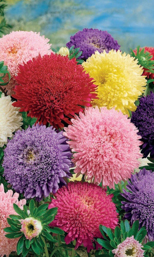 Густомахровая игольчатая астра! Растения высотой около 60 см. Соцветия густые длинноиголчатые, белые, кремово-жёлтые, серебристо - голубые, фиолетовые, серебристо - розовые, красные. Цветет в августе - сентябре. Используют очень широко: для посадки в сборные цветники...