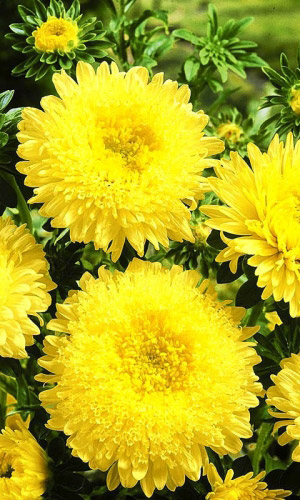 ОднолетнееОтносится к сортотипу Принцесса. Куст сильноветвистый, высотой 55-60 см. Привлекательное обильноцветущее растение с крупными, махровыми, светло-жёлтыми соцветиями, диаметром 10-12 см. Для выращивания подходят хорошо освещенные участки с плодородной суглинистой или супесчаной почвой. Астры обладают высокой холодостойкостью – хорошо переносят заморозки до – 3-4 °C.