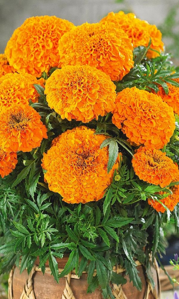 С очень крупными привлекательными оранжевыми цветками, высотой 90-100 см. Цветки собраны в махровые и шарообразные соцветия-корзинки, диаметром до 15 см. Растение теплолюбивое, засухоустойчивое. Предпочитает солнечные места. Цветет обильно с июня до заморозков. Используют в цветниках, на клумбах, бордюрах. Долго сохраняет свежесть в срезанном виде...