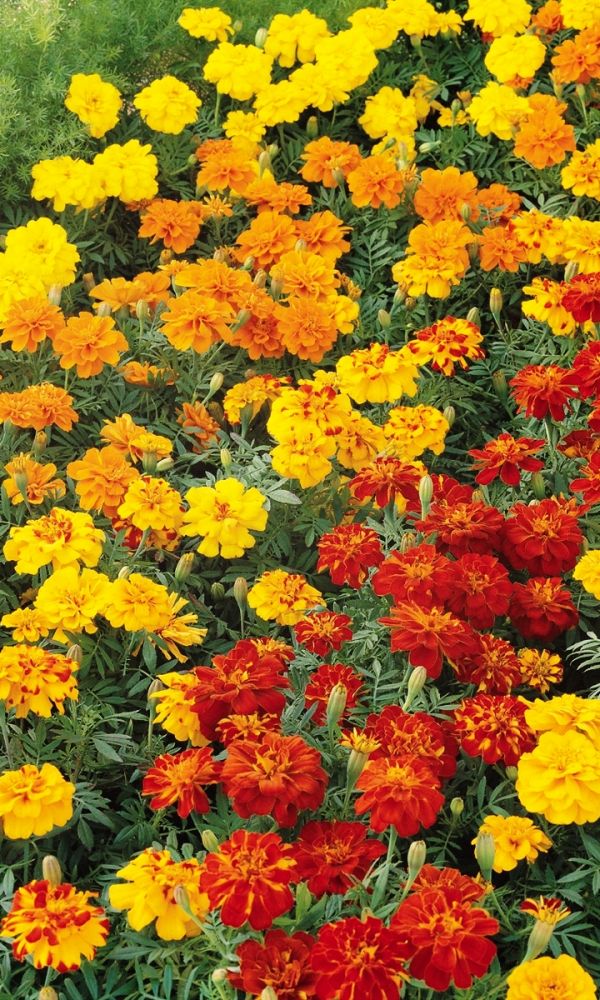 Удивительно красивая, высокорослая смесь. Густомахровые, яркие соцветия оранжевой, золотисто-жёлтой и лимонно-жёлтой окраски, в изобилии покрывают компактные, ветвистые кустики. Цветёт обильно и продолжительно всё лето, до первых заморозков.Легко переносит пересадку в...