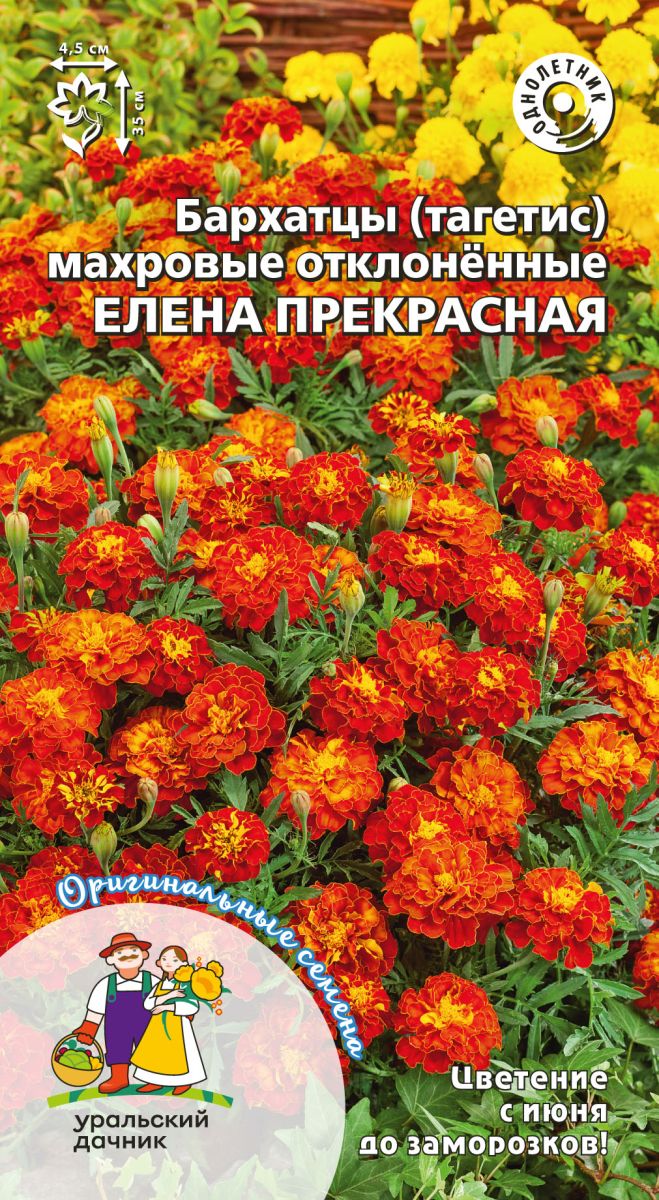 ОднолетнееЯркие огоньки, которые оживят сад и сделают нескучной любую клумбу. Растения среднерослые, высотой 25-35 см, в период цветения сплошь покрываются махровыми соцветиями, одновременно на растении до 40 распустившихся бутонов. Окраска цветков очень необычная – красно-коричневая с небольшими вкраплениями золотисто-жёлтого. Растения крайне неприхотливые, отличаются обильным и продолжительным цветением, оказывают фитосанитарное воздействие на почву.