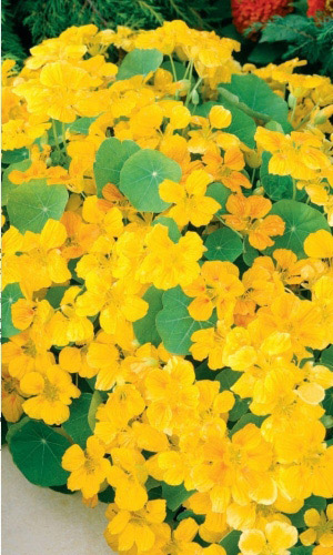 Превосходная смесь для бордюров. Кустик компактный, прямостоячий, высотой до 30-40 см. Листья округлые, ярко-зелёные. Цветы крупные, золотисто-жёлтые, красные, кремовые, оранжевые, расположены поверх листьев. Цветёт обильно с июля по октябрь.Семена высевают в середине мая...