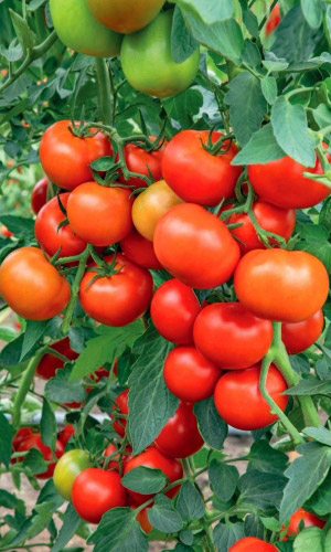Кисть... кисть... кисть... Собьёшься со счета! Высокорослый, суперурожайный гибрид. Плоды округлой формы, гладкие, интенсивно-красной окраски, массой 90-110 г, плотные. Очень хорош в засолке. Отлично хранится при сборе целыми кистями.Ценность гибрида: устойчивость к стрессам, высокая завязываемость плодов даже в прохладную, пасмурную погоду, стабильная урожайность...