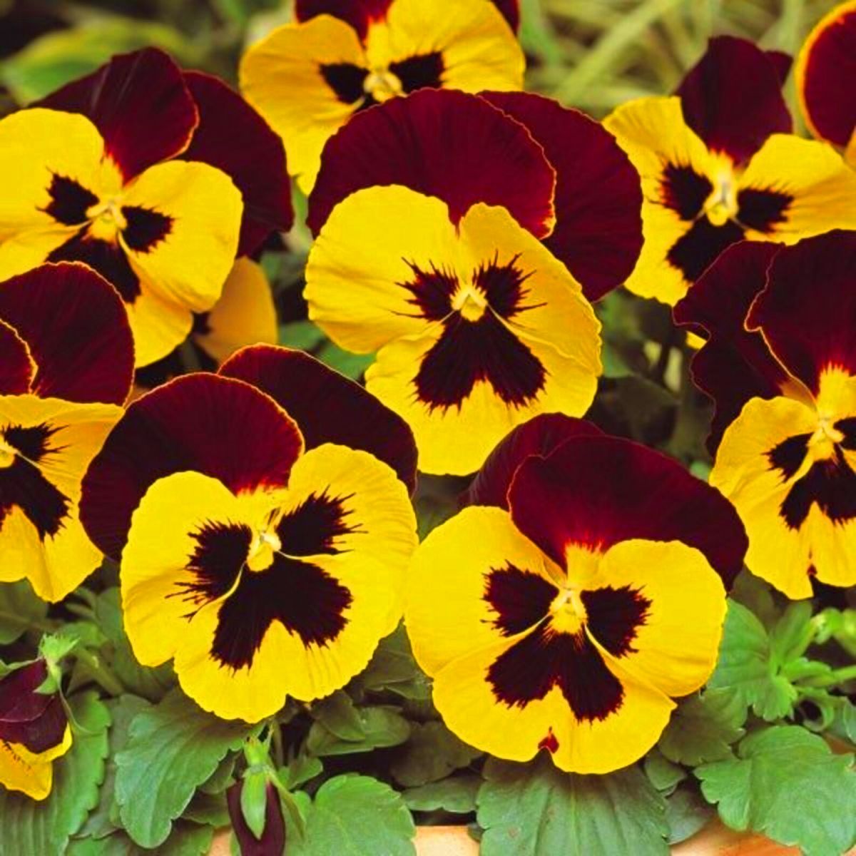 ДвулетнееОдни из самых любимых садовых цветов. Растение с быстрым ростом, красиво и обильно облиственное, с крупными цветками, сидящими на короткой и твердой цветоножке, высотой 15-20 см. Цветы крупные, трёхцветные. Верхние лепестки красно-бордовые, нижние жёлтые, с чёрными пятнами у основания лепестков. Цветёт с июня до морозов. Используют для клумб и бордюров, в цветники – группами.