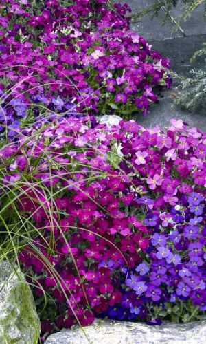 Стелющиеся побеги образуют плотные ковры. Большие сине-фиолетовые, лиловые, пурпурные цветки собраны в кисти. Цветёт на второй год с мая по июнь. После цветения желательно произвести обрезку цветоносов, чтобы ограничить рост и вызвать вторичное цветение осенью...
