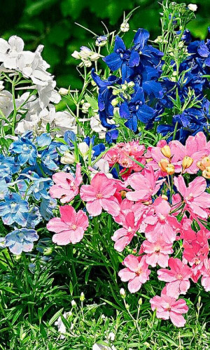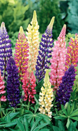 Гармоничная смесь из нежных «цветов-бабочек»! Высота растения около 40 см, стебли прямые, опушённые. Листья на длинных черешках, пальчато-рассеченные, сверху зелёные, снизу беловатые. Цветы белые, голубые, синие, розовые собраны в редкую кисть на конце стебля. Цветёт июль -...