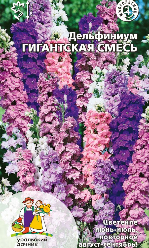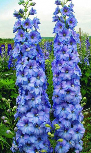 Идеальное растение для заднего фона цветника. Его крупные сине-голубые цветки с контрастным белым глазком собраны в плотные пирамидальные соцветия. Высота – больше 1,5 м. На лепестках часто возникает фиолетовый румянец, прожилки лепестков тёмно-синие. Дельфиниум...