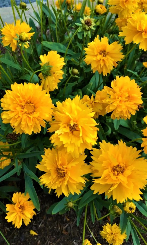 Травянистое растение с тонкими ветвистыми стеблями, высотой до 100 см. Соцветия одиночные, махровые, диаметром 3-4 см, ярких окрасок. Цветение обильное и продолжительное, длится с июля до заморозков. Кореопсис используют для посадки в миксбордеры, клумбы, бордюры и на...