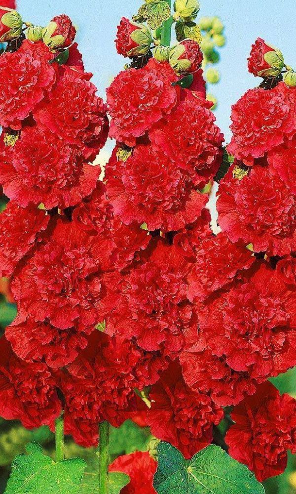 Многолетнее растение, выращиваемое как двулетнее. Растение формирует куст высотой 150-200 см с крупными цветками алого цвета. Соцветия – гигантские вытянутые кисти, состоящие из махровых цветков диаметром 8-12 см. Цветение начинается в конце июня и продолжается до сентября...