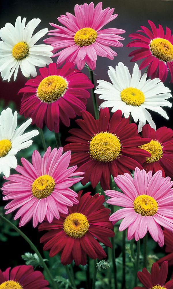 Многолетнее, красочное растение с изящными, ажурными листьями. Крупные, нежные и романтичные, интенсивно розовые, ярко-красные и белые ромашковидные соцветия на длинных крепких стеблях, наиболее привлекательно смотрятся группами на газоне, в миксбордерах. Отлично...