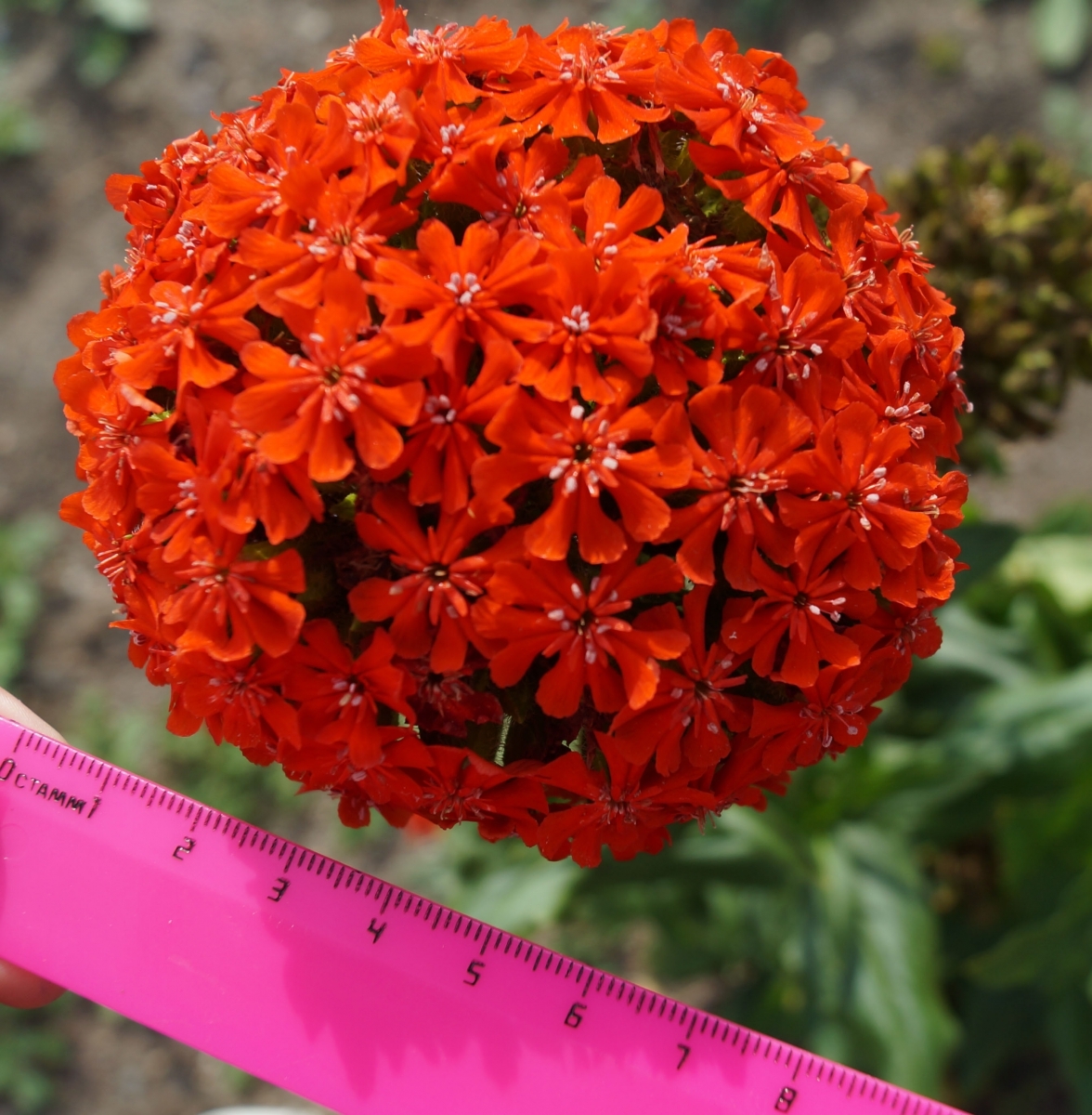 МноголетнееМноголетник. Стебли прямые, маловетвистые, с крупными супротивными листьями, высотой 80-90 см, увенчаны крупными головками огненно-красных цветков диаметром до 10 см. Цветёт на втором году после посева. Морозостойкое неприхотливое растение. Хорошо растет на солнечных участках.