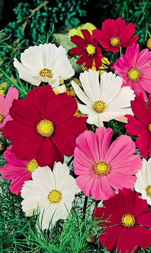 Великолепная смесь с крупными, яркими цветами! Простота формы и богатейшая цветовая палитра оттенков этой крупной «мексиканской ромашки», а также обилие и продолжительность цветения, давно уже снискали признание и любовь садоводов не только в России. Язычковые цветки...