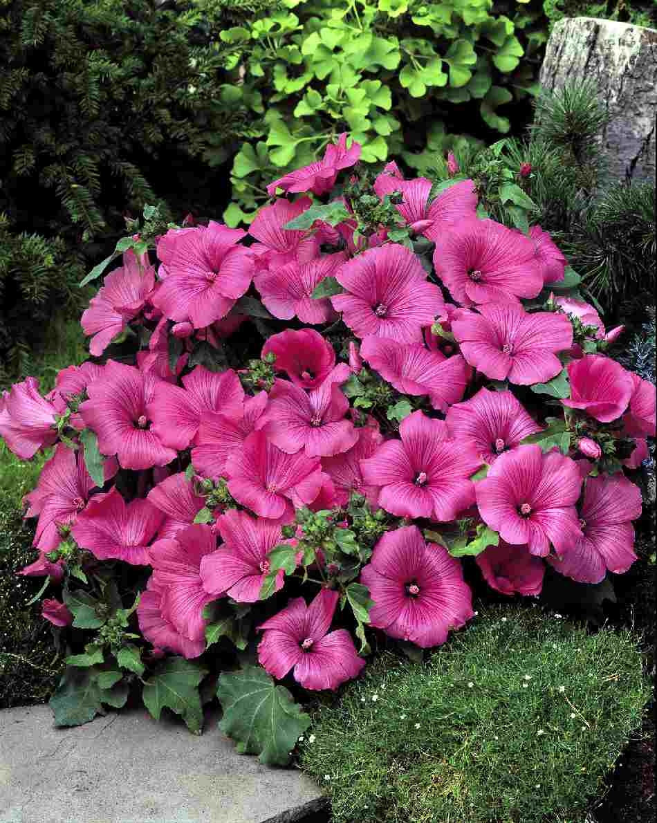 ОднолетнееОднолетнее растение, высота которого варьируется от 60 сантиметров до 1,2 метра. Нижние листья имеют сердцевидную или округлую форму, верхние состоят из 3-5 лопастей. Цветки воронковидные, пазушные, диаметром от 6 до 10 сантиметров. Верхние цветки располагаются на более коротких цветоносах, чем нижние. Окраска венчика белая, карминовая или розовая. Цветёт лаватера трехмесячная обильно, период цветения продолжается с середины лета до начала осени.