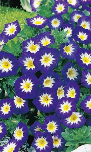 Необыкновенно обаятельная смесь миниатюрных красоток! Растение со стелющимися побегами высотой до 15 см. Цветы одиночные белые с синими пятнами по краю лепестка и нежно-голубые с белым центром до 4 см в диаметре. Цветёт с июня по сентябрь. Используют как почвопокровное...