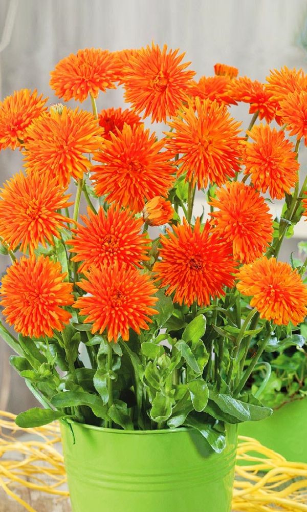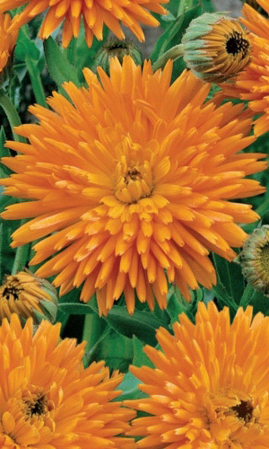Высота 60 см. Соцветия оранжевые, густомахровые, 5-6 см, длительное цветение. Обладает лекарственными свойствами.Растение холодостойкое, выносит заморозки до -5 °С. Предпочитает плодородные, увлажнённые почвы и солнечное место. Посев семян производят в апреле - июне в...