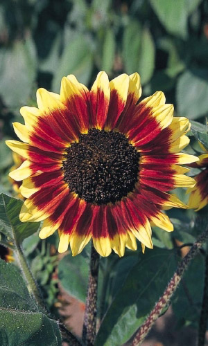 Небольшой компактный кустик высотой 30 см с прочными длиными цветоносами. Цветы эффектные, крупные, 7-8 см в диаметре, контрастно окрашены. Краевые цветки оранжевые, ярко-красные, розовые, трубчатые-чёрные. Цветёт с июля по сентябрь...