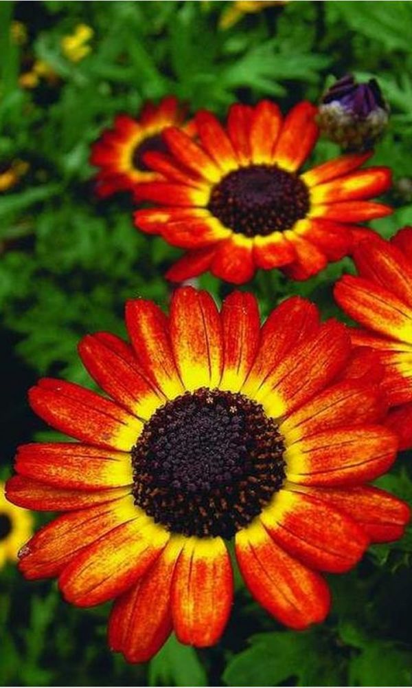 Однолетнее растение высотой 25 см, с прочными, ветвистыми стеблями, с ажурными листьями и крупными соцветиями до 4 см в диаметре, расположенными на концах побегов одиночно. Цветки — с краями ярко-жёлтого цвета и центром от тёмно-бордового до коричневого, иногда красного...