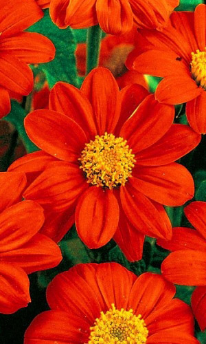 Роскошные высокие кусты высотой 100 см. Родина титонии – Мексика, её называют еще мексиканским подсолнухом. Стебли красноватые, слабо опушенные. Растение при всей своей мощности не требует подвязки. Соцветия крупные корзинки диаметром 5-8 см, красной окраски, с жёлтой...