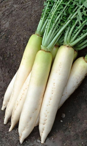 Сочные нежные корнеплоды.Корнеплоды отличного вкуса. Сорт среднеспелый. Период от всходов до уборки урожая 50-70 дней. Корнеплод длиной 35-40 см, цилиндрической формы. Поверхность и мякоть корнеплода белая, с приятным вкусом редиса. Рекомендуется выращивать на грядках с гребнем, так как корнеплоды глубоко погружены в почву. Используется в свежем виде и для непродолжительного хранения...