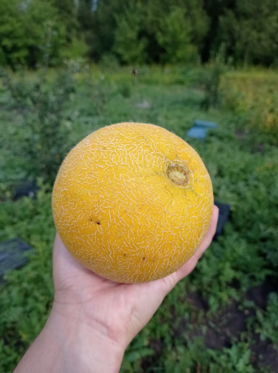 Очень ранний сорт, не имеющий аналогов, как в России, так и в ближнем зарубежье. Срок созревания 50-60 дней. Растение длинноплетистое. Плоды маленькие, массой 250-300 г, округлой формы, преимущественно гладкие, ярко-жёлтого и затем ярко-оранжевого цвета. Мякоть желтоватая, очень насыщенного сладкого вкуса. Это именно то, что давно все ждали: дынька, которую можно съесть за один раз, не оставляя часть плода на потом.