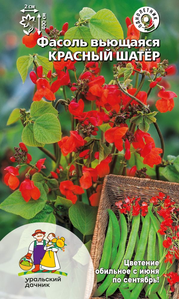 Очень популярный однолетник. Стебли тонкие, вьющиеся, гладкие, густооблиственные. Листья многочисленные, сложные, тёмно-зелёного цвета. Цветки, собранные в кистевидное соцветие по 5 и более штук, ярко-красной окраски. Плод – крупный, шероховатый боб, довольно декоративен...