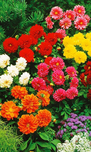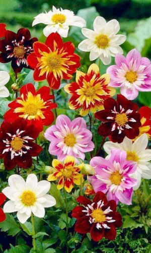 Эта компактная садовая георгина, высотой 30-60 см, будет радовать Вас своими яркими цветами с июля до заморозков. Соцветия крупные, диаметром 8-9 см, полумахровые, белые, жёлтые, розовые, красные, тёмно-красные и бордовые. Используют для срезки, групповых посадок и оформления...