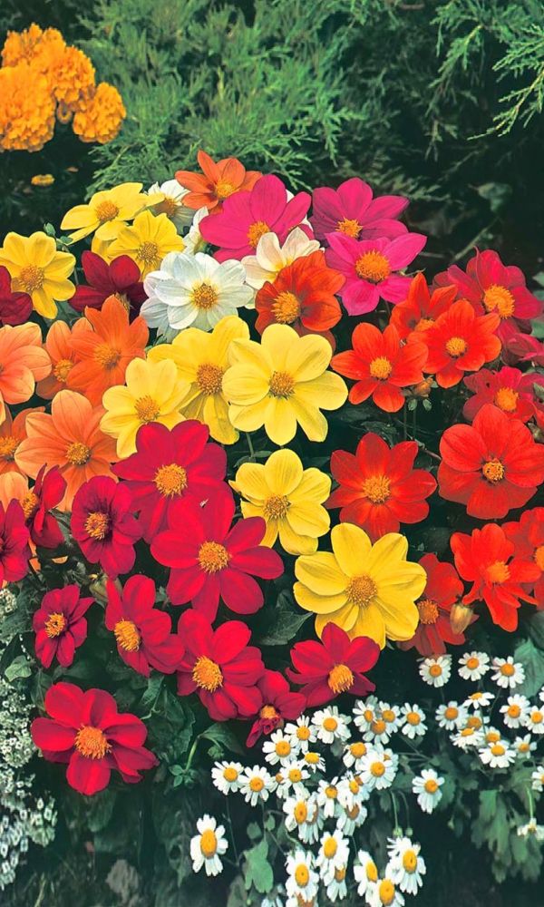 Жизнерадостные низкорослые георгины! Растения компактные, высотой около 45 см. Соцветия жёлтые, диаметром 8-9 см. Используют в цветниках большими группами на клумбах. Прекрасный материал для срезки.Семена высевают в марте-апреле в рассадные ящики. Глубина заделки 0,3-0,5 см...