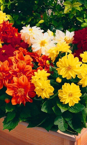 Низкорослые георгины высотой до 45 см. Стебель упругий, листья бронзо-коричневые. Соцветия - яркие, полумахровые диаметром 6-8 см. Георгины отлично подойдут для создания яркого бордюра, смешанной клумбы, а также для посадки в вазоны и балконные ящики.Посев: в марте-апреле на...