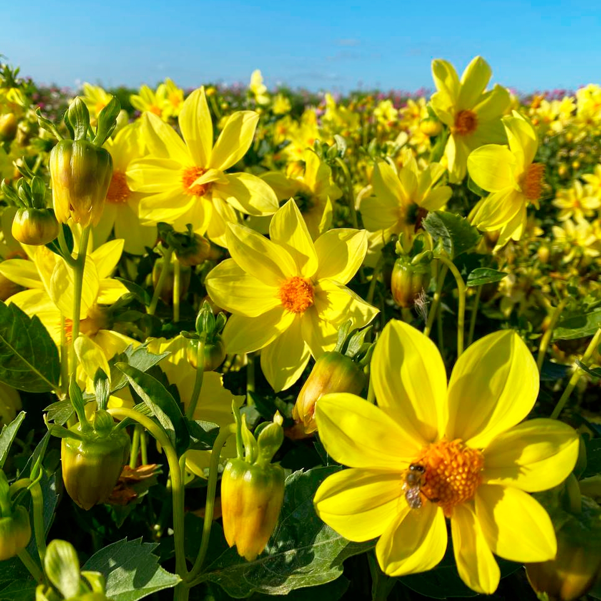 Жизнерадостные низкорослые георгины! Растения компактные высотой около 35 см. Соцветия жёлтые диаметром 8-9 см. Цветет с июля по октябрь. Используют в цветниках большими группами на клумбах. Прекрасный материал для срезки.Агротехника. Любит обильный полив и подкормки...