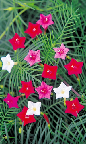 Прекрасная вьющаяся лиана, сочетающая в себе кружевную листву и выглядывающие сквозь неё красные звёздочки цветков. Растение быстро вырастает до высоты 2-3 метров, создавая густую завесу мягко-зелёной листвы. Цветки красного цвета, в форме звёздочек. Применяется в...