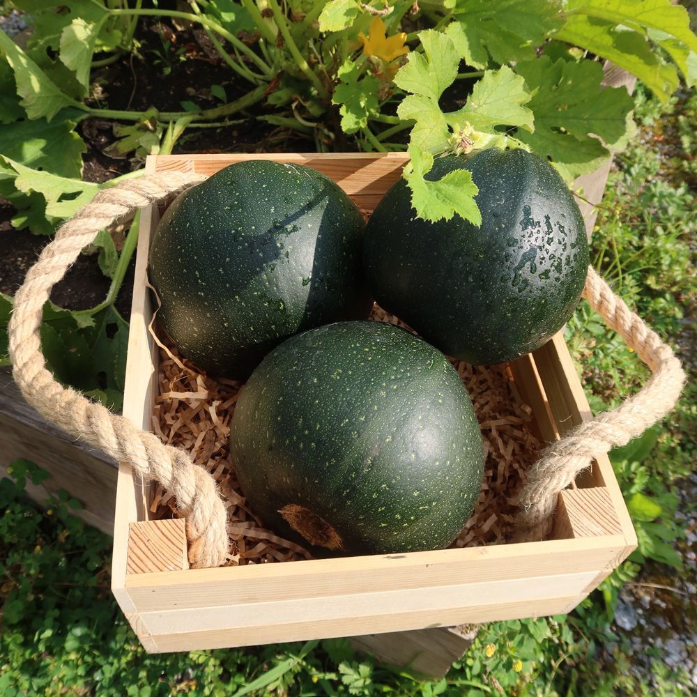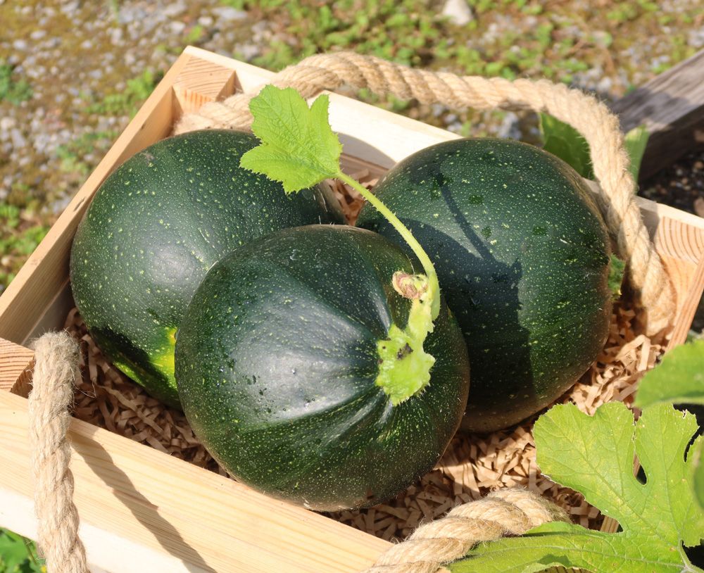 Очень ранний сорт с компактным кустом, без плетей и плодами круглой формы. Плоды диаметром 15 см, с тонкой и нежной кожурой.