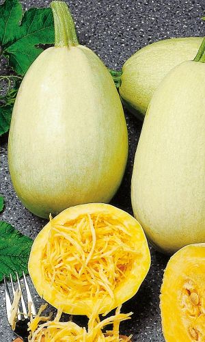 Позднеспелый (95-100 дней) кустовой сорт, тип спагетти, универсального использования. Плоды удлинённо-овальные, массой 1-1,5 кг. Мякоть жёлтая, мелкозернистая, толщиной 2,5 см, вкусная, при варке распадается на «макароны». Когда плоды светло-зелёные, их используют в кулинарии, как обычные кабачки. Чтобы мякоть при варке распадалась на «макароны», нужно дождаться, пока плод станет светло-жёлтым.