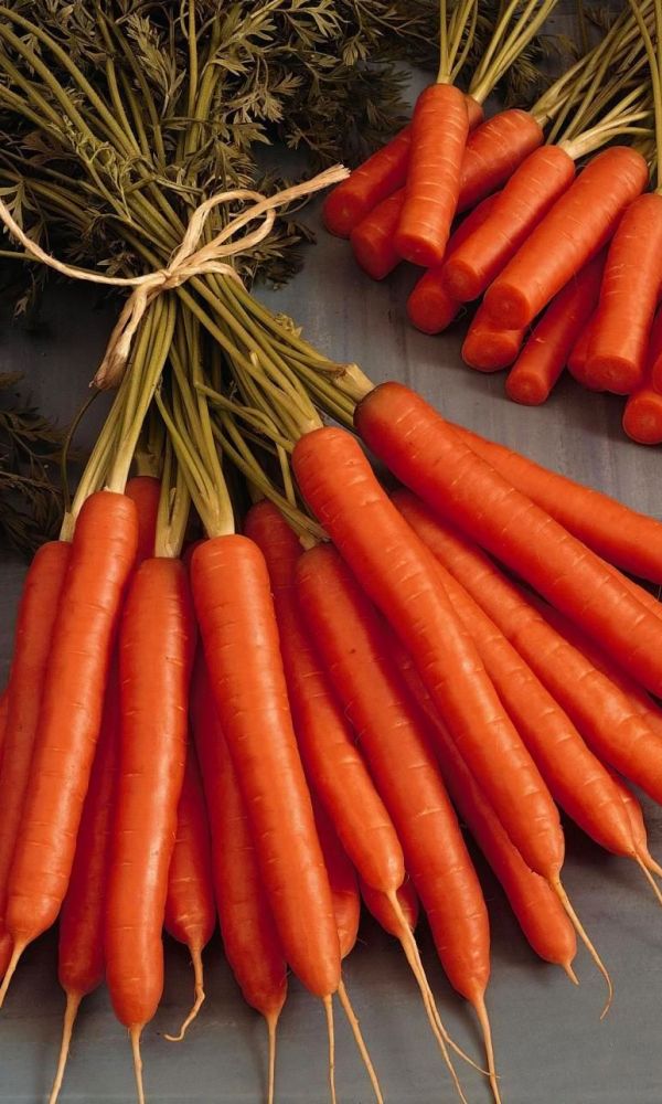 Урожайный, среднеранний сорт (от всходов до технической спелости 90-110 дней; пучковую морковь убирают через 50-60 дней после появления всходов). Лучший сорт по вкусовым качествам! Корнеплоды цилиндрической формы с тупым кончиком, ярко-оранжевые, длиной 15-18 см, массой 90-130 г, диаметром 2,5-3 см, ботва длиной 35-40 см. Сердцевина маленькая, мякоть красно-оранжевая, сочная, нежная, сладкая. Сорт транспортабельный, подходит для длительного хранения...