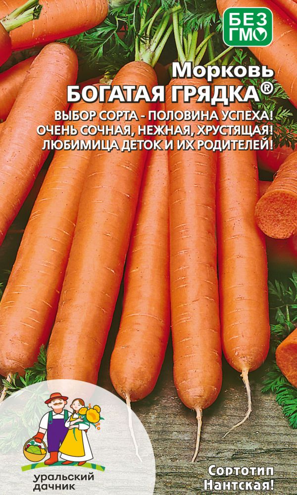Перспективный, крайне неприхотливый сорт с превосходным вкусом и высокой продуктивностью – 6-8 кг/м2. Раннеспелый, формирует урожай за 95-105 дней от появления всходов. Корнеплоды сортотипа Нантская, гладкие, ровные. Массой 110-180 г, с высоким содержанием сахаров и каротина...