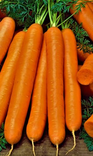 Великолепный среднеспелый гибрид для хранения. Корнеплоды цилиндрические, интенсивно-оранжевые, гладкие, длиной 20-22 см. Вкусовая оценка свежих корнеплодов 5 баллов по пятибалльной системе.Рекомендуются для переработки, употребления в свежем виде и хранения.Благодаря повышенному содержанию каротина и отличным вкусовым качествам корнеплоды незаменимы для детей, людей с плохим зрением и нарушением обмена веществ...