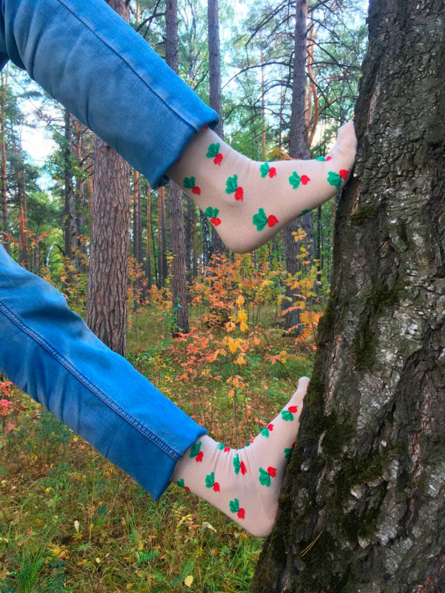 Фирменные хлопковые носки приятного телесного цвета с красивым паттерном редиса.