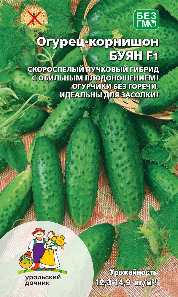 Отличный вкус свежих и консервированных огурчиков.Партенокарпик. Отличные вкусовые качества. Для открытого и закрытого грунта. Урожайный раннеспелый гибрид. Растение среднерослое, средневетвистое, женского типа цветения. В плодоношение вступает через 46-50 дней после появления всходов. Плоды удлинённо-цилиндрические, тёмно-зелёные, крупнобугорчатый, опушение чёрное, редкое. Масса 70-110 г. Устойчив к мучнистой и ложной мучнистой росе. Рекомендуется для потребления в свежем виде и для засолки...