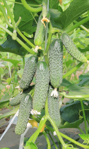 Партенокарпический гибрид. От всходов до начала плодоношения 45-55 дней. Предназначен для выращивания под плёнкой и в открытом грунте. Растение среднеплетистое. В каждом узле формируется 1-3 завязи. Плоды редкобугорчатые, тёмно-зелёные с короткими светлыми полосами, цилиндрические, длиной 8-10 см.Ценность гибрида: высокая завязываемость и однородность плодов, отличные вкусовые качества, длительный период плодоношения, устойчивость к комплексу заболеваний...