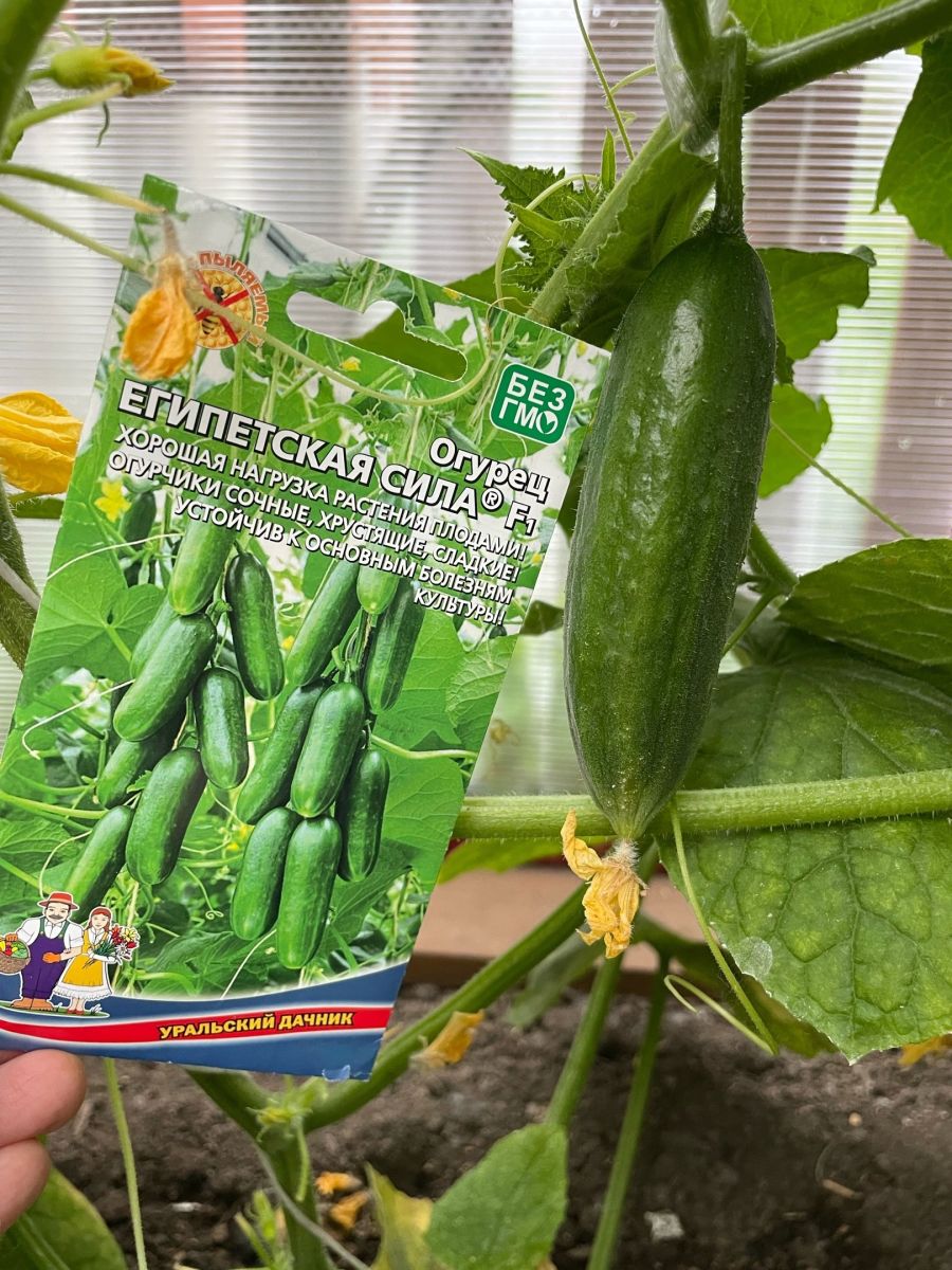 Если вы слышите вопль соседа: «Египетская сила!!!», знайте, он вырастил огурец Египетская сила F1 и впервые увидел плети с аппетитными плодами. Их правда так много, что каждый раз, смотря на куст, удивляешься обилию. Гибрид партенокарпик, раннеспелый. Лучше его выращивать на шпалерах в открытом или защищённом грунтах. Первые плоды – через 40-50 дней после прорастания сеянцев. Зеленцы длиной 18-20 см, тёмно-зелёного цвета, гладкие, с нежной кожицей и гармоничным вкусом без горечи. Используются в свежем виде, а если захочется разнообразия, пожарьте огурчики, приправив их соевым соусом и зеленью, – вкуснотища! Гибрид не боится перепадов температур, толерантен к ряду болезней.