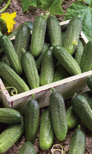 Великолепный урожай плодов-корнишонов! Плоды мелкобугорчатые, длиной 8-10 см, массой 60-80 г, крепкие, хрустящие, не склонны к перерастанию, без горечи, устойчивы к болезням. Засолочный.