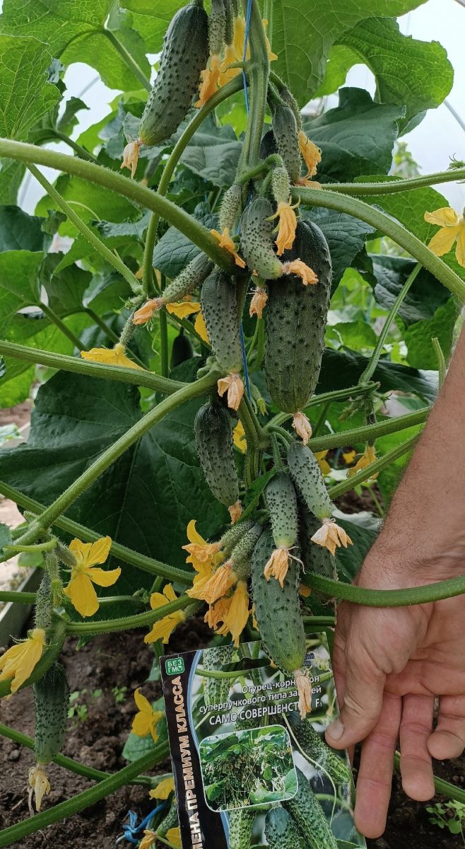 Тёмно-зелёные крупнобугорчатые корнишончики не только собирать приятно, но и в банке, и на столе они будут украшением. В отличие от других сортов, плоды не горчат, даже при неблагоприятных погодных условиях. Поэтому из него Вы всегда можете приготовить вкусный салат, который придётся по вкусу и родным, и гостям. Урожай 27-30 кг/м2.