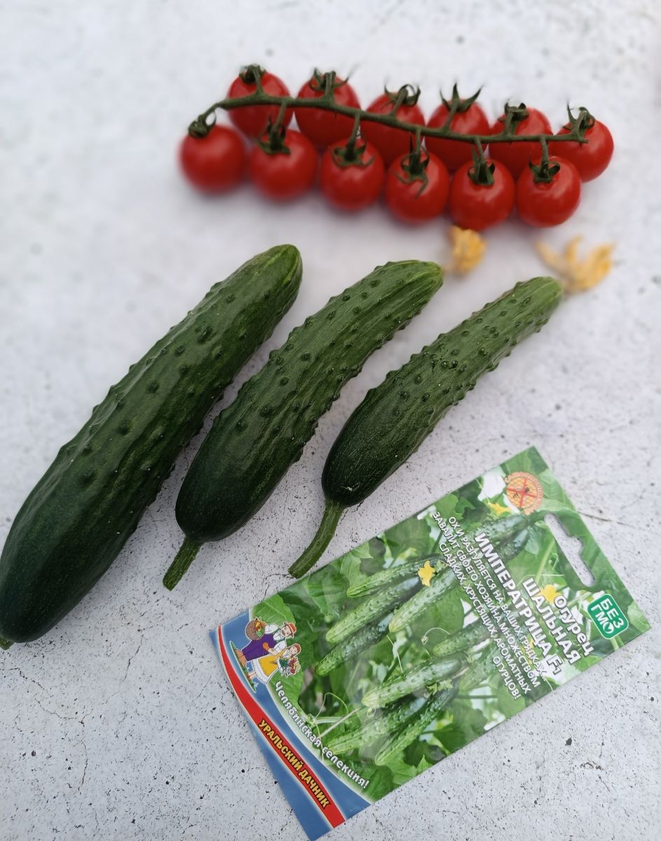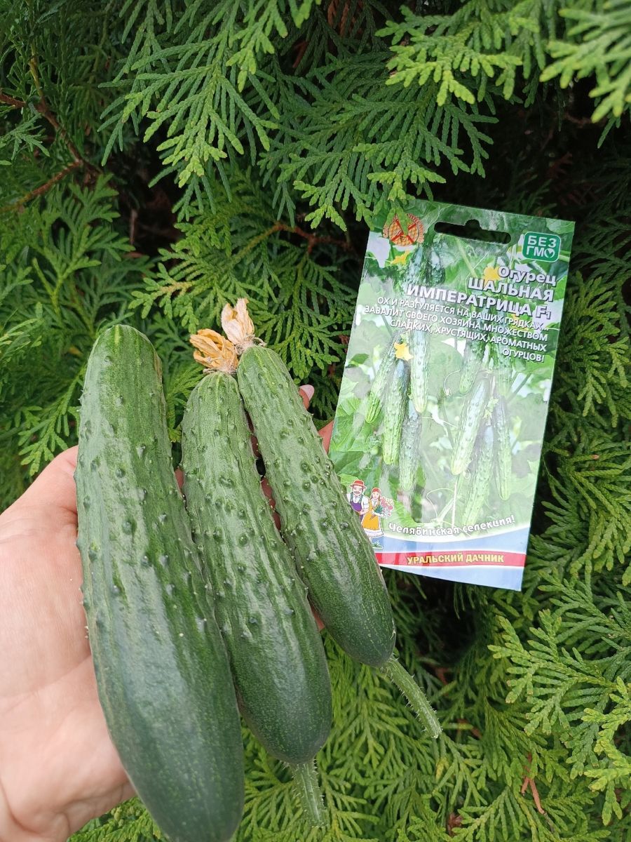 Этот «шальной» огурец для настоящих императриц своего садового участка. Плодоносит так, что кричать об этом хочется на всю округу. Салатный высокоурожайный гибрид, который подходит для выращивания в плёночных теплицах. Партенокарпик, в плодоношение вступает на 40-45 день после полных всходов. Растение слабоветвистое, формирует плоды средней длины, массой 200-215 г, удлинённо-цилиндрической формы 15-17 см, зелёного цвета, крупнобугорчатые, с редким, белым опушением. Вкус у огурца превосходный, использование универсальное. Растение устойчиво к основным болезням огурца, поэтому «гулять» Шальная императрица F1 будет громко и весело весь весенне-летне-осенний сезон.