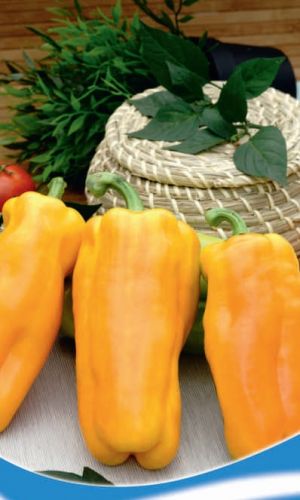 Раннеспелый крупноплодный гибрид с обильным и продолжительным плодоношением. Высота растения до 80 см. Плоды изумительного янтарно-жёлтого цвета, массой до 250 г, толщина стенки до 1,2 см, плотные, сочные, очень сладкие.Оптимальная температура прорастания семян 25-28 °C. Всходы...