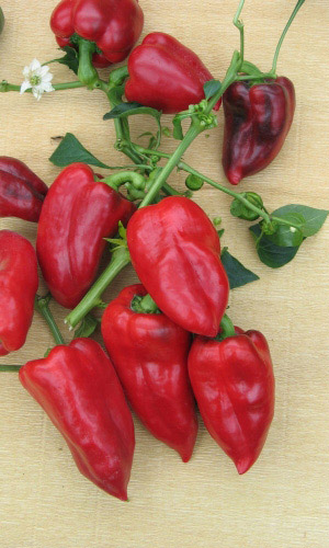 Суперурожайный, среднеранний сорт для выращивания в открытом грунте, парниках, в горшках, на окне или балконе. Кусты высотой 50-70 см, сплошь усыпаны яркими перчиками. Плоды тёмно-красные, глянцевые, практически без семян, треугольной формы, массой 20-25 г, очень сладкие и...